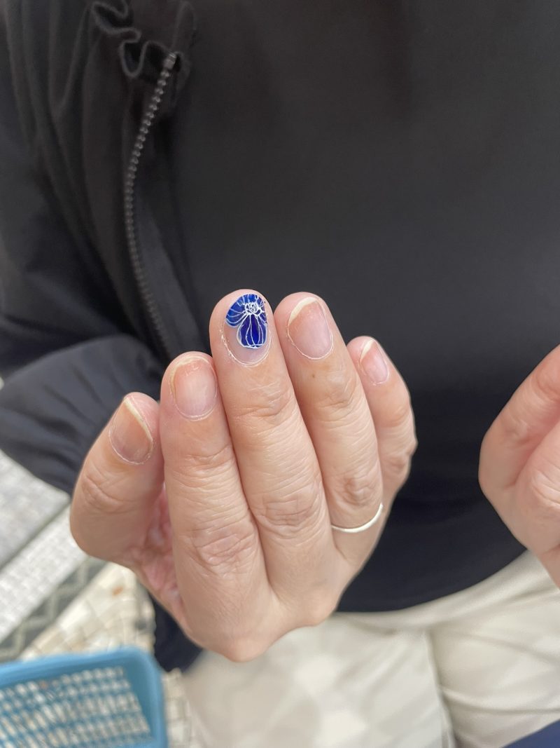 整えた爪に、アクリル絵の具や胡粉ネイルで手描きアートを描くというものです。