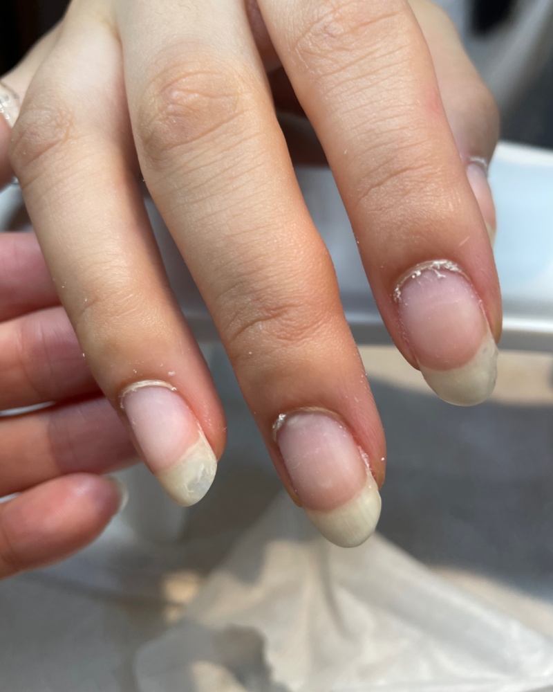 乾燥している状態ですと爪全体に張り付いているので、なかなか見分けがつかなかったり、あることを認識できないかもしれません。
