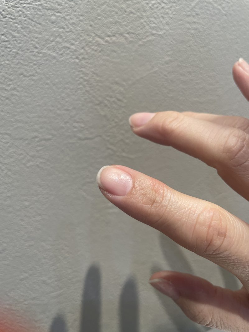 - カサカサでひび割れた状態から脱した指先。